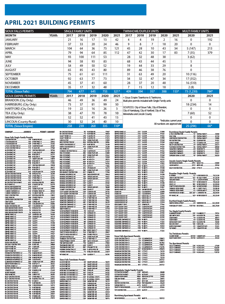 Sioux Empire Building Permits - April 2021 Click here to view full size Categories In the news Member Highlights Sioux Empire Home Builders Care Foundation Sioux Empire Home Show Sioux Empire Parade of Homes Uncategorized Archives Archives Select Month February 2022 January 2022 August 2021 July 2021 June 2021 May 2021 April 2021 March 2021 February 2021 January 2021 November 2020 October 2020 September 2020 June 2020 May 2020 March 2020 January 2020